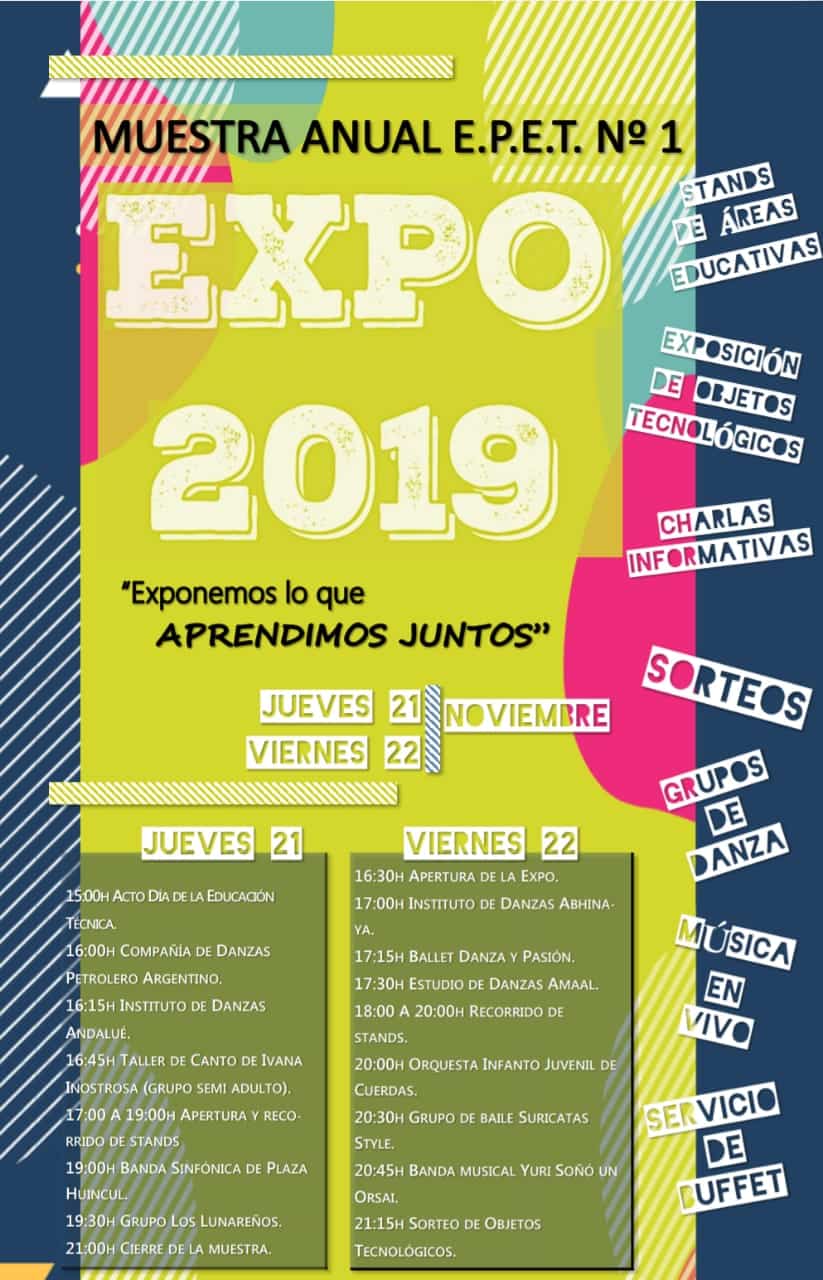Desde las 18 a las 20 se podrá realizar el recorrido por los stands y a las 20 se presentará la orquesta Infanto Juvenil, luego el grupo de baile Suricatas Style, la banda Yuri Soñó Un Orsai y se cerrará con el sorteo de objetos tecnológicos.