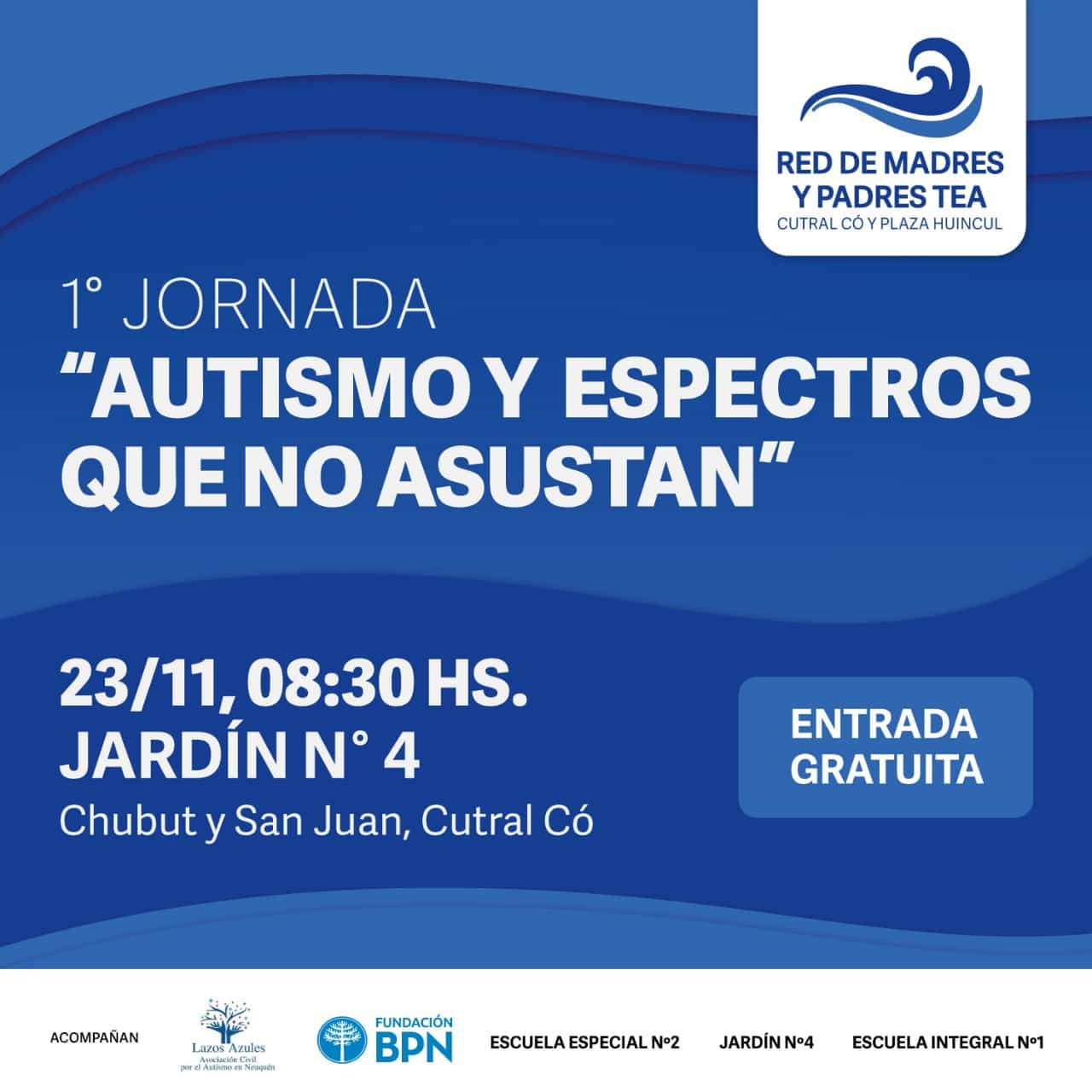 Este sábado 23 se llevará adelante la “1º Jornada Autismo y Espectros que no asustan”. La convocatoria es en el jardín de Infantes Nº 4 de Cutral Co (Chubut y San Juan). La entrada es gratuita.