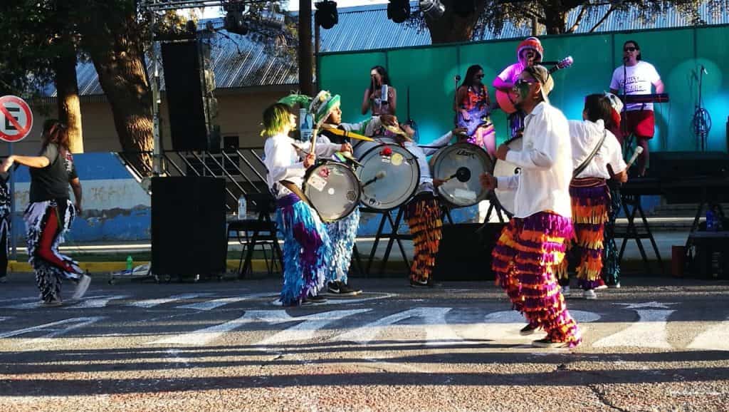 En una de las calles de la plaza “San Martín”, sobre General Paz, se instaló el escenario por el que pasan los integrantes de las diferentes agrupaciones murgueras que se sumaron a la propuesta, promovida por los locales de “Piedra Libre”.