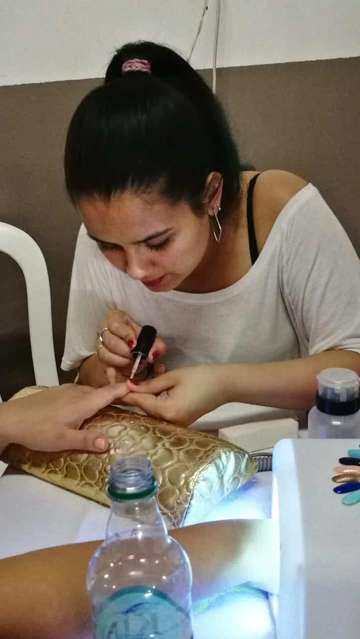 Además habrá ofertas de glitter, maquillaje artístico, uñas, perfilado de cejas, todo en el momento, también hay un barbero para que los varones puedan ir a cortarse el pelo.
