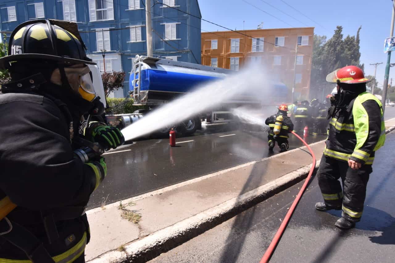 El ejercicio incluyó “la existencia de una pluma de gases, por lo que se ensayó la evacuación de los alumnos de la escuela 22 y el confinamiento de los habitantes de dos torres en los edificios del barrio Suyai”.