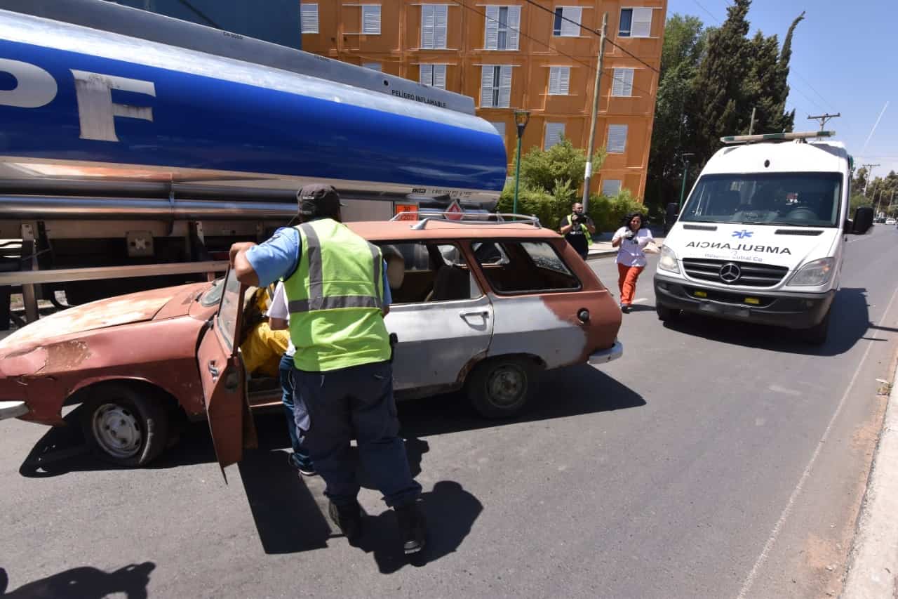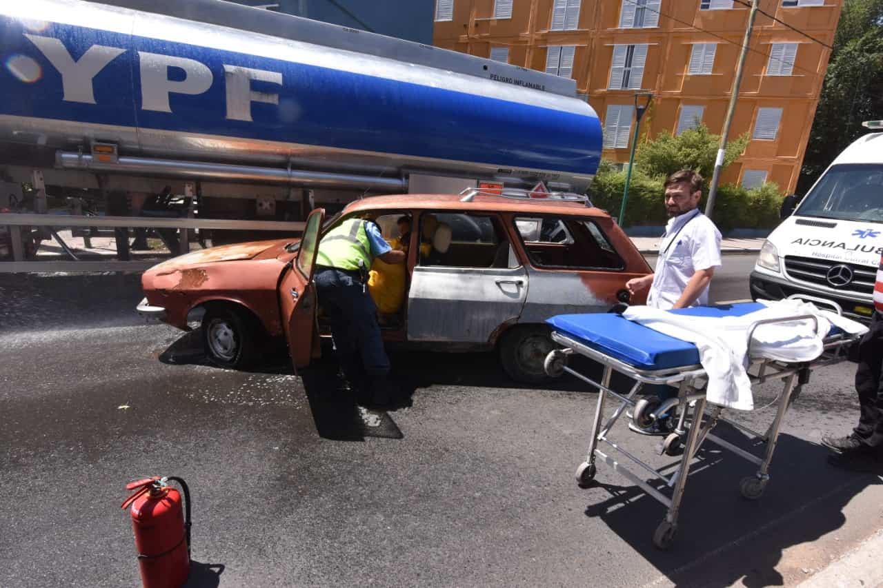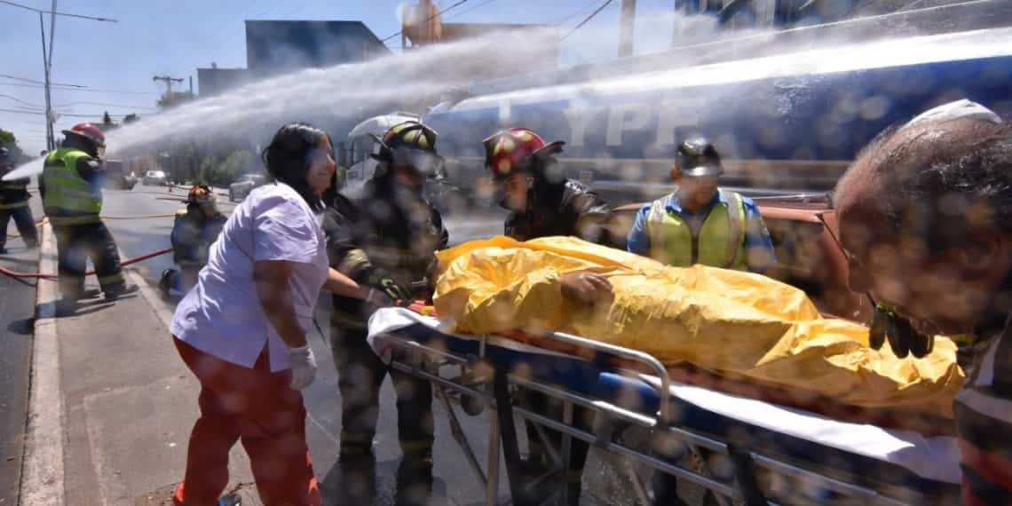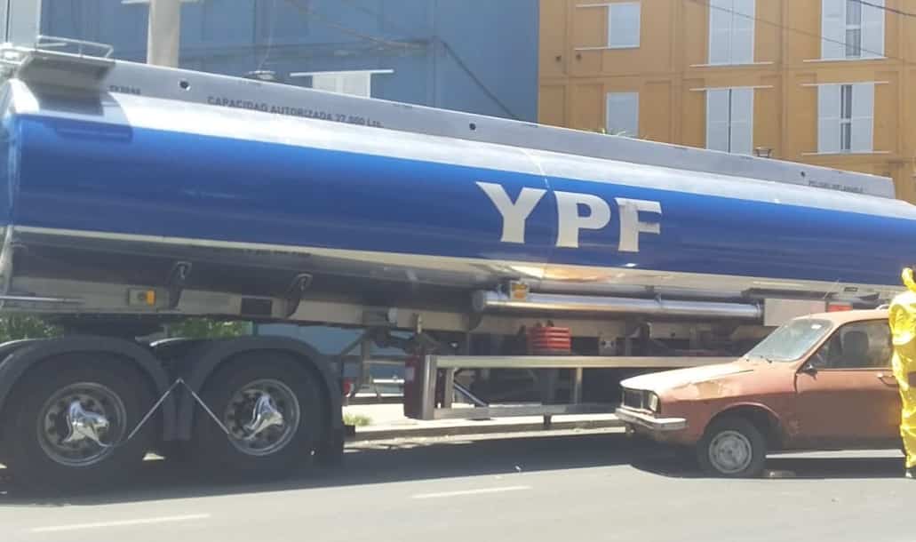 Después del choque entre un auto particular y un camión cisterna que trasladaba combustible en avenida San Martín 448 y Copahue de Plaza Huincul, se inició la tarea.