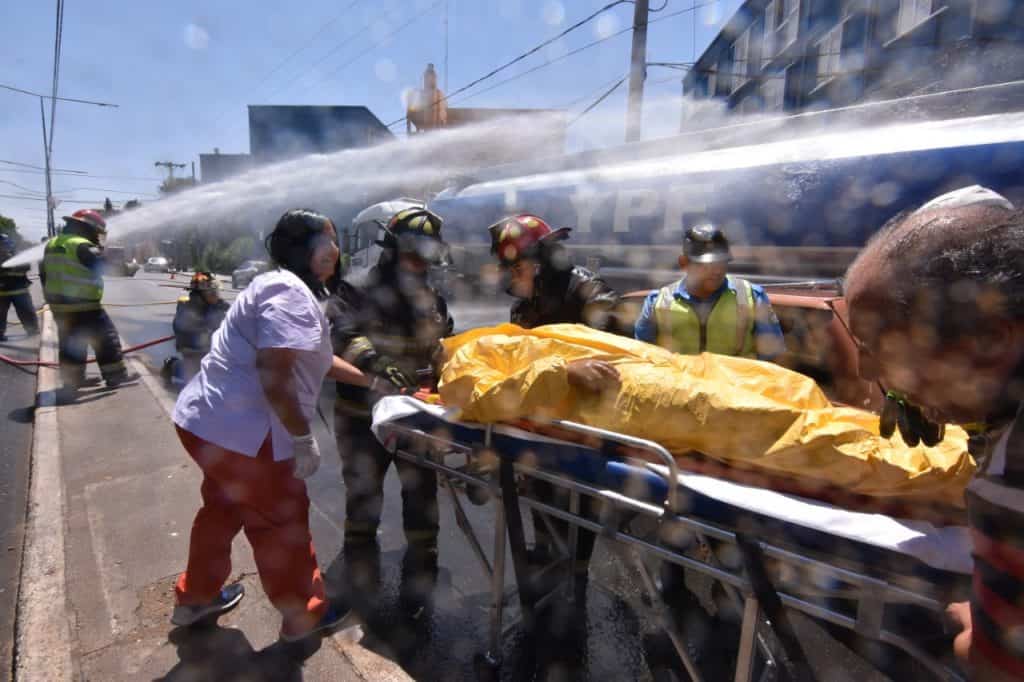 Al mismo tiempo y como parte del ejercicio, se informó que “la escuela primaria Nº 22 fue evacuada y de que las dos personas accidentadas se encuentran en buen estado de salud”.