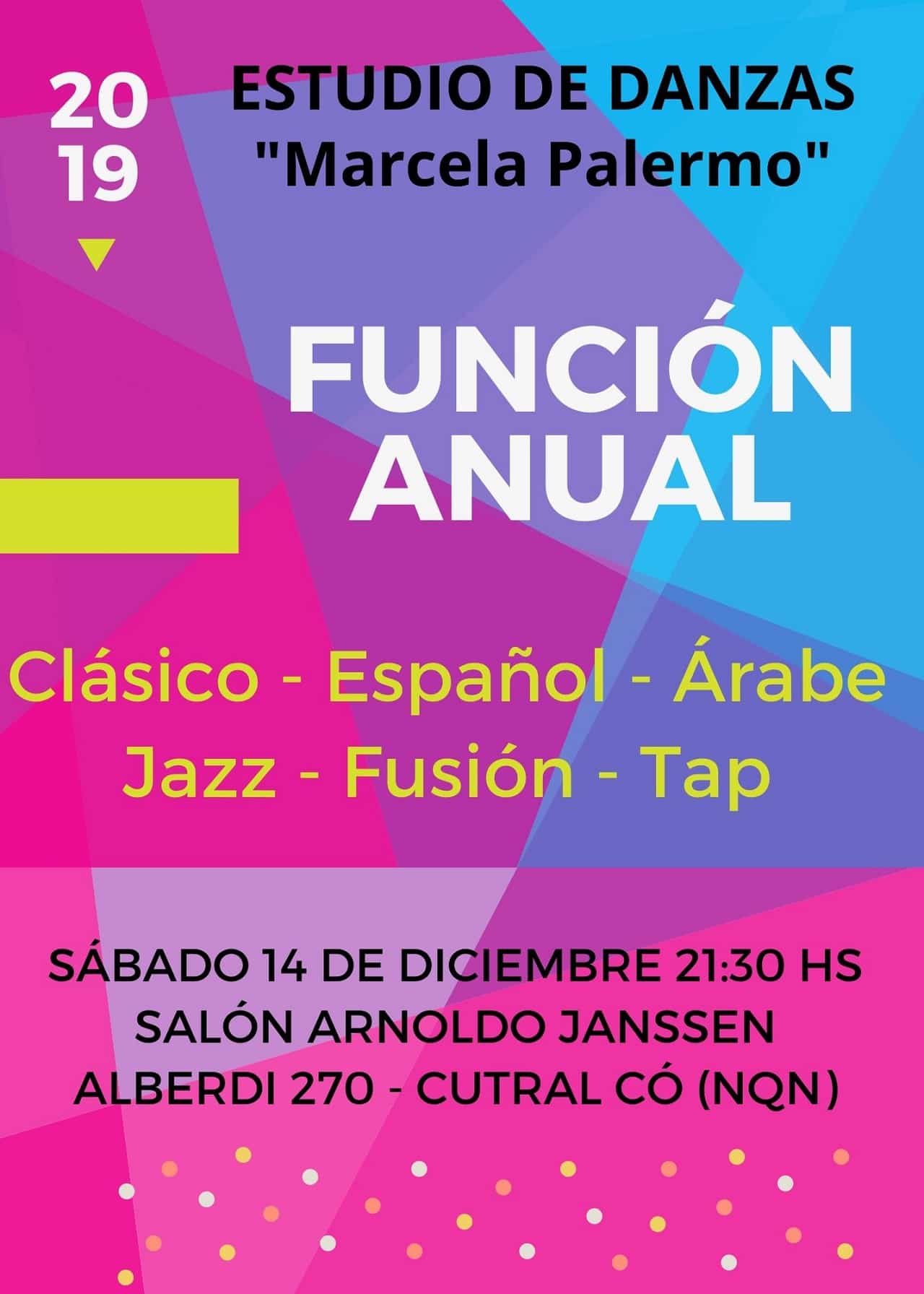 Como es tradicional, las alumnas que asisten al instituto de danzas que dirige la profesora Marcela Palermo harán su velada de cierre anual. Será este sábado, a las 21:30 en el salón Arnoldo Janssen de Cutral Co.
