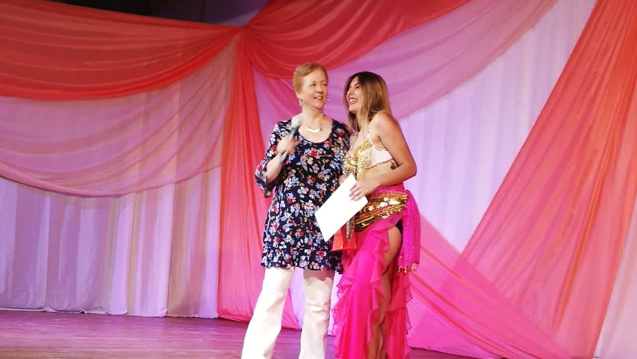 Fue el caso de Milagros Elgueta, quien en la tercera parte, donde la danza Árabe era la protagonista, ofreció “Romántico Oriental” y recibió las flores, el certificado y el saludo de sus familiares también.