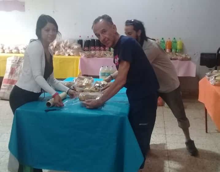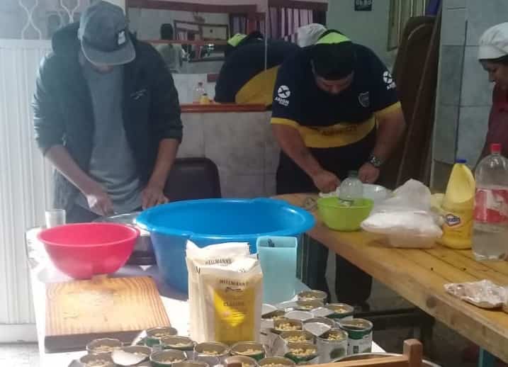 A través de la donación de los pollos y el resto de mercadería que recibieron de parte de algunos comerciantes, empresas y vecinos que quisieron aportar también, se empezaron a cocinar para prepararlos.