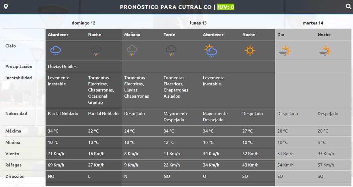 En otras localidades, como Añelo y el Alto Valle, cayó granizo con la llegada del calor pero en Cutral Co y Plaza Huincul las probabilidades parecen bajas.