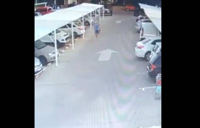 El uniformado de consigna en el local lo siguió a pie por la zona del estacionamiento hasta la salida por calle Tucumán, donde lo alcanzó y comenzó el forcejeo.