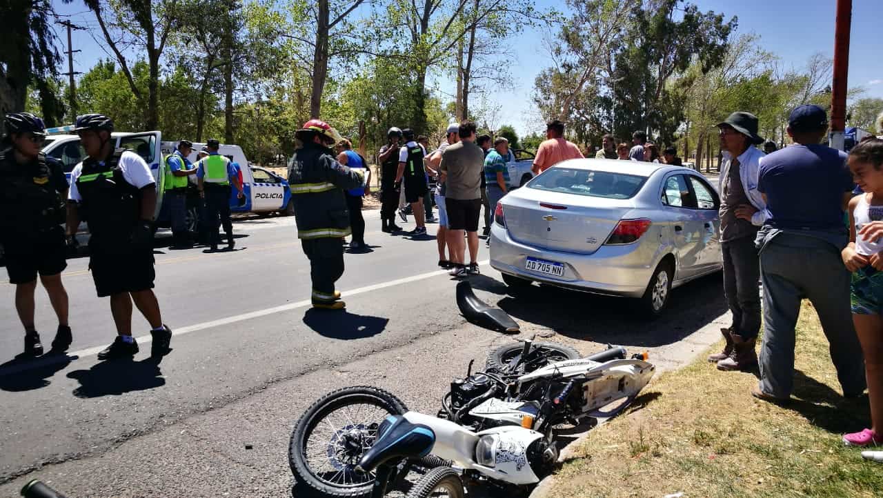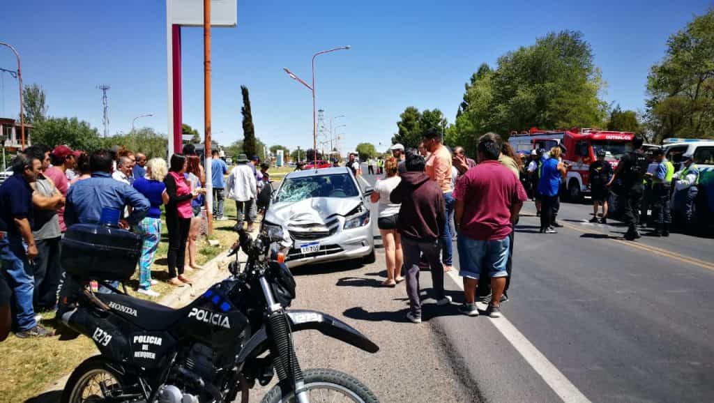 Un incidente vial con dos motociclistas y un vehículo se produjo después del mediodía en la ruta 22 e Yrigoyen de Cutral Co.