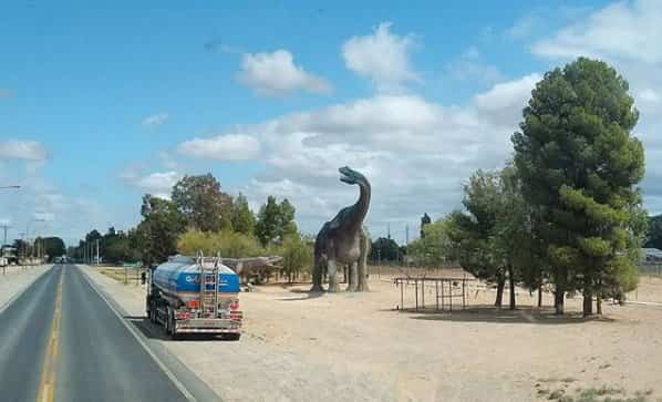 Esta semana comenzó la tarea de pintado de las réplicas de los dinosaurios que se construyeron en el ingreso a Plaza Huincul, a la vera de la ruta nacional 22.