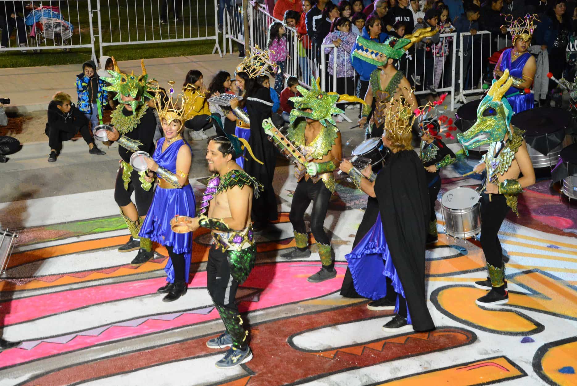 Desde las 19, horario previsto para la apertura, se empezó con el desfile de las diferentes agrupaciones que lucieron sus trajes, brillos, color y ritmo ante el público.