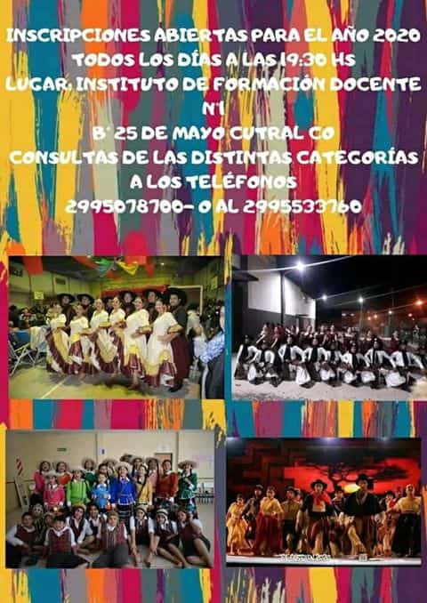 El inicio será el próximo 3 de marzo y los ensayos serán todos los días de la semana, a partir de las 19.30, en el IFD 1 del barrio 25 de Mayo de Cutral Co.