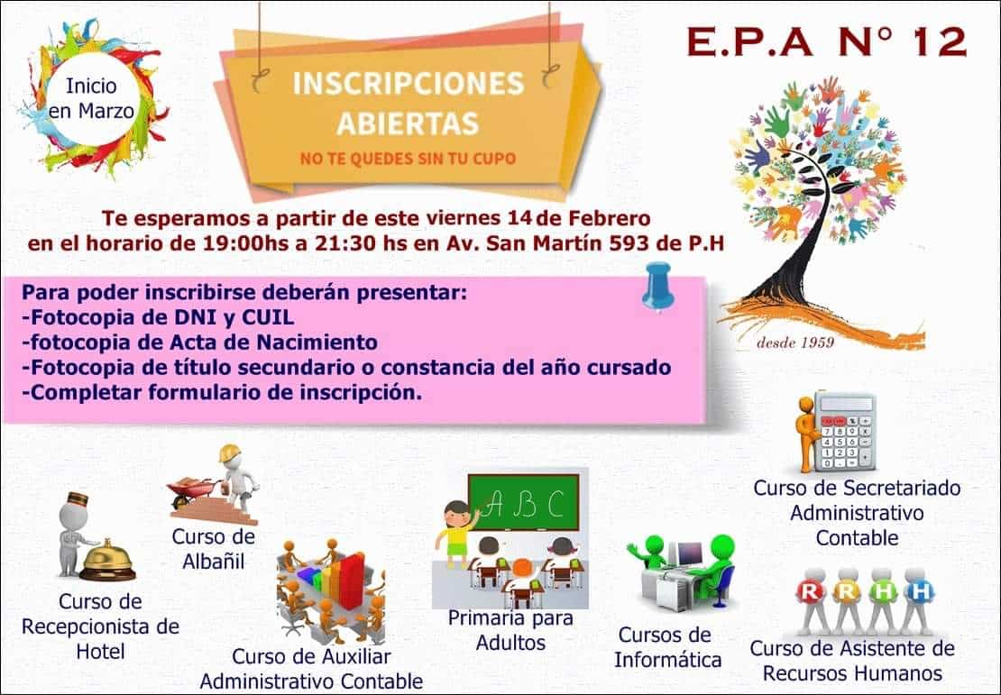 Las inscripciones para los cursos que dicta la Escuela para Adultos N° 12 se extenderán por una semana más, en virtud de que no se pudo iniciar las clases por problemas en el edificio escolar.