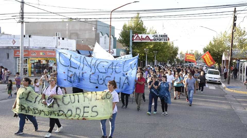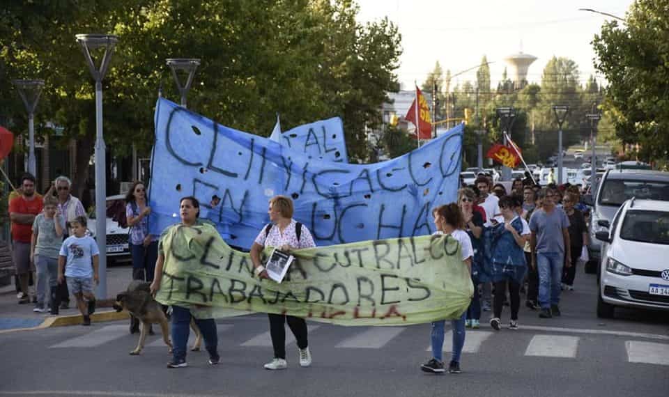 Los trabajadores y trabajadoras de la Clínica Cutral Co volvieron a marchar este viernes por la tarde.