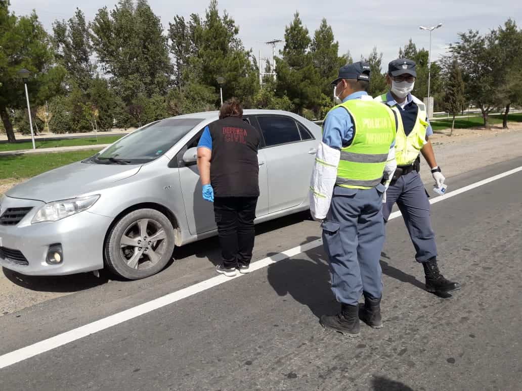 Desde la subsecretaría de Defensa Civil, en conjunto a los efectivos policiales y agentes sanitarios, están en el puesto de acceso sobre la ruta 22, a la altura del parque de la Ciudad en Cutral Co, controlan la temperatura a los conductores.
