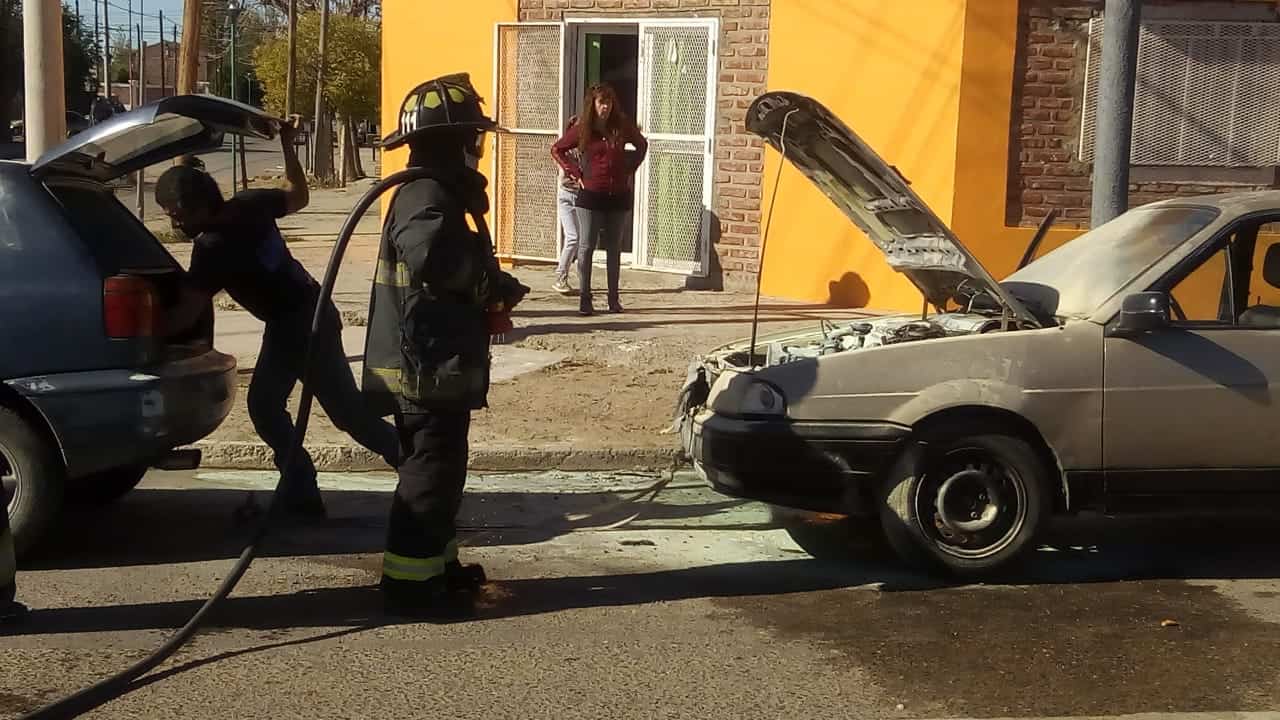 Esta tarde, se produjo un incendio en el motor de un vehículo, en avenidas 1 de Mayo y Mariano Moreno de Plaza Huincul.