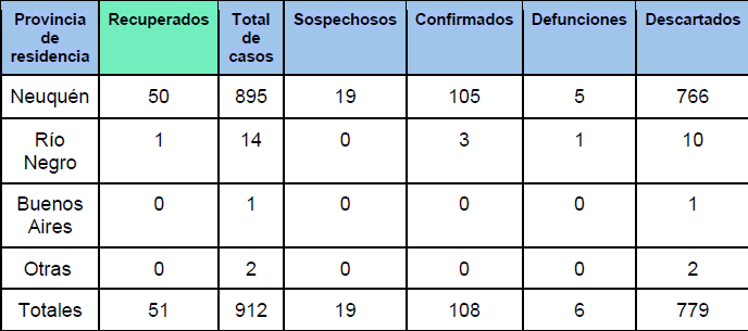 Asimismo, se aclara que no se solicitará aislamiento social, preventivo y obligatorio para aquellas personas que hayan visitado las localidades de Loncopué, Bariloche, Choele Choel, Cipolletti y Catriel. Solo se tendrá en cuenta como antecedente epidemiológico en los últimos 14 días y si la persona comenzara con sintomatología compatible, se considerará caso sospechoso y se actuará según protocolo vigente.