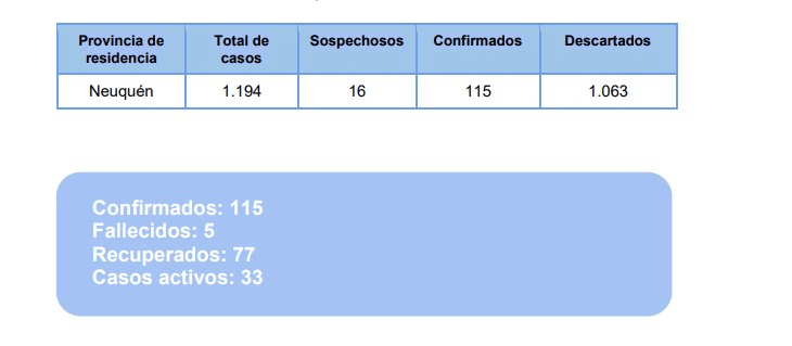 Hoy se reportaron seis casos sospechosos de coronavirus COVID-19 en la provincia del Neuquén. Y no se confirmaron nuevos casos.