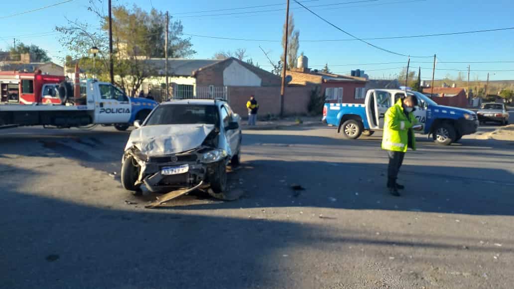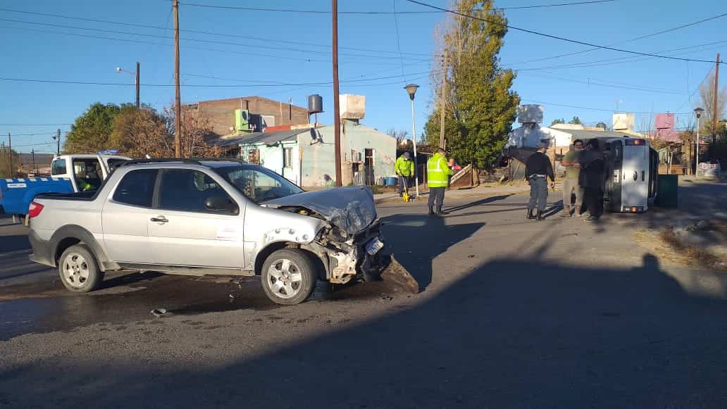 Una camioneta Ford Ranger terminó volcada luego de ser embestida por una Fiat Strada en un fuerte siniestro vial ocurrido esta mañana. Según las primeras versiones, la camioneta Ford circulaba de este a oeste por calle 25 de Mayo y, al llegar al cruce con Zapala, fue embestida por la Strada que iba de sur a norte por Zapala