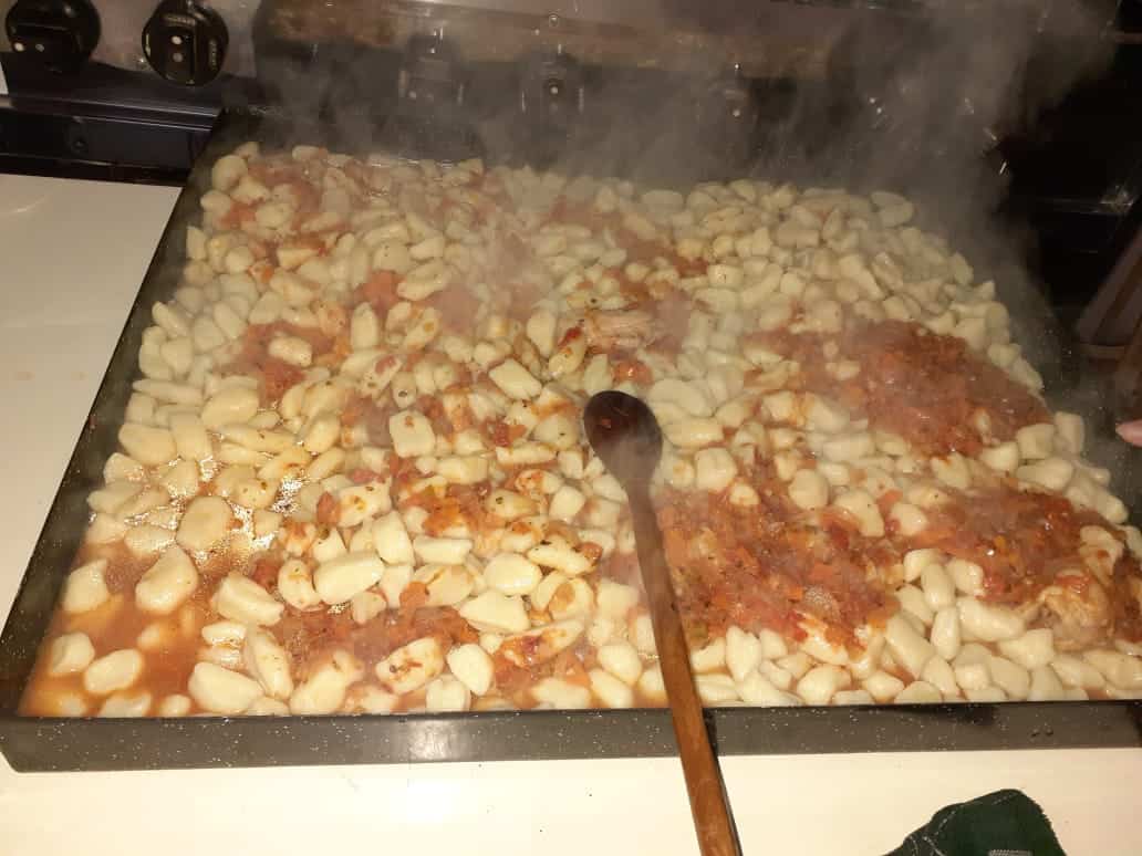 Se trata de las viandas de “ñoquis” que realizaron Mabel Molina y un grupo de vecinas de la barriada. La idea es que los pobladores de este sector que están en una condición más vulnerable fueron los beneficiados con este plato de pastas que, de manera habitual, suele comerse los días 29 de cada más.