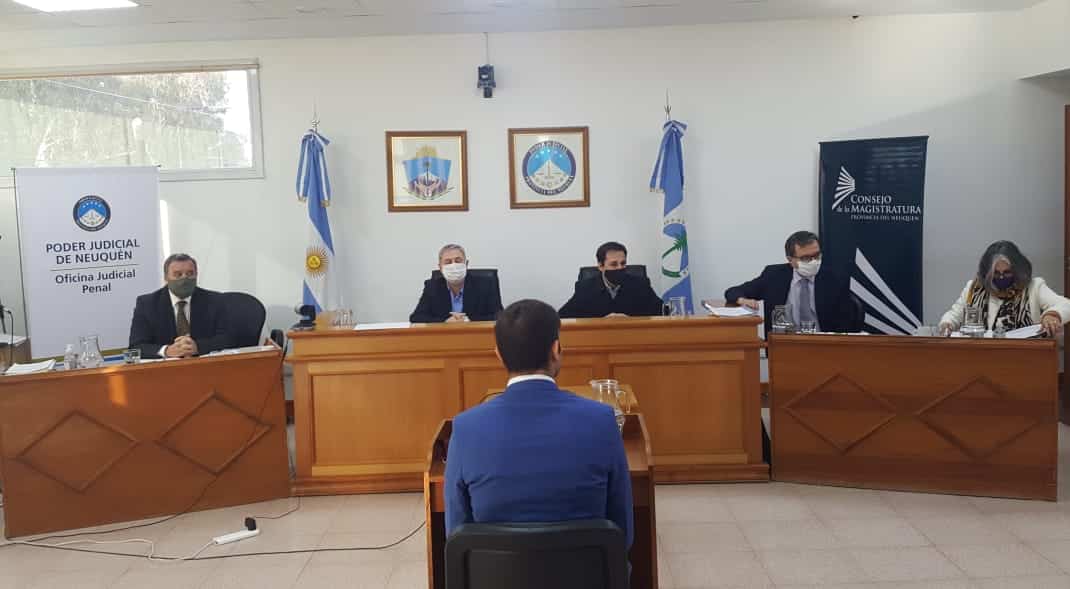 Los integrantes del Consejo de la Magistratura, en su mayoría estuvieron en el edificio de la Oficina Judicial mientras que dos miembros, entre ellos, el presidente, Evaldo Moya, Gustavo Mazieres y Romina Irigoín, lo hicieron mediante videoconferencia.