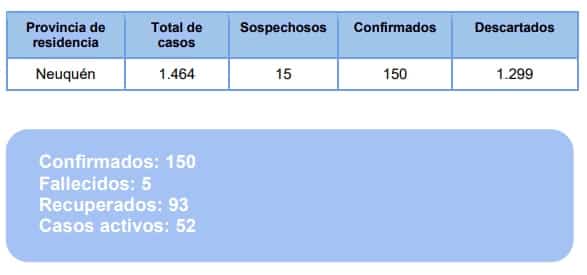 Aislamientos obligatorios: Para las personas que estén regresando a sus domicilios, procedan de las áreas con circulación viral activa comunitaria (CABA y provincias de Buenos Aires, Córdoba, Chaco, Santa Fe, Tierra del Fuego y Río Negro) y cuyo destino final sea la provincia del Neuquén, deberán realizar aislamiento social, preventivo y obligatorio durante 14 días. Para las personas que por motivos laborales, familiares y de salud circulen transitoriamente entre las provincias de Neuquén y Río Negro, la misma deberá ser limitada solamente a las actividades habilitadas. Se busca desestimular el traslado de personas para actividades que puedan ser realizadas en su localidad.