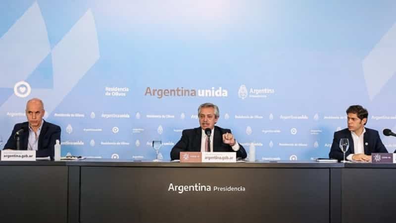 El anuncio se hizo el jueves por la noche, en una conferencia brindada por el presidente Alberto Fernández junto al gobernador bonaerense, Axel Kicillof, y el jefe de Gobierno porteño, Horacio Rodríguez Larreta. Allí el mandatario explicó que un 85% del territorio nacional está fuera de la transmisión comunitaria, mientras que el 15 por ciento restante representa el mayor conflicto. Entre ellas están AMBA (zona del conurbano y ciudad de Buenos Aires), Trelew, algunas ciudades de Río Negro y Chaco, principalmente en Resistencia.