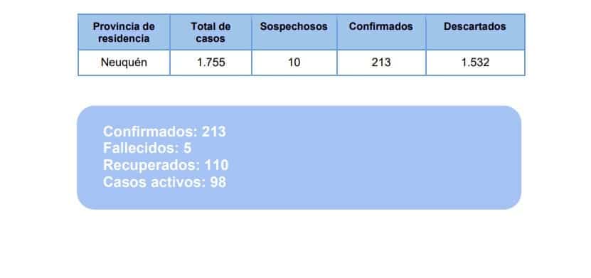 ● Una mujer de 55 años, de Neuquén capital, contacto estrecho de un caso confirmado.