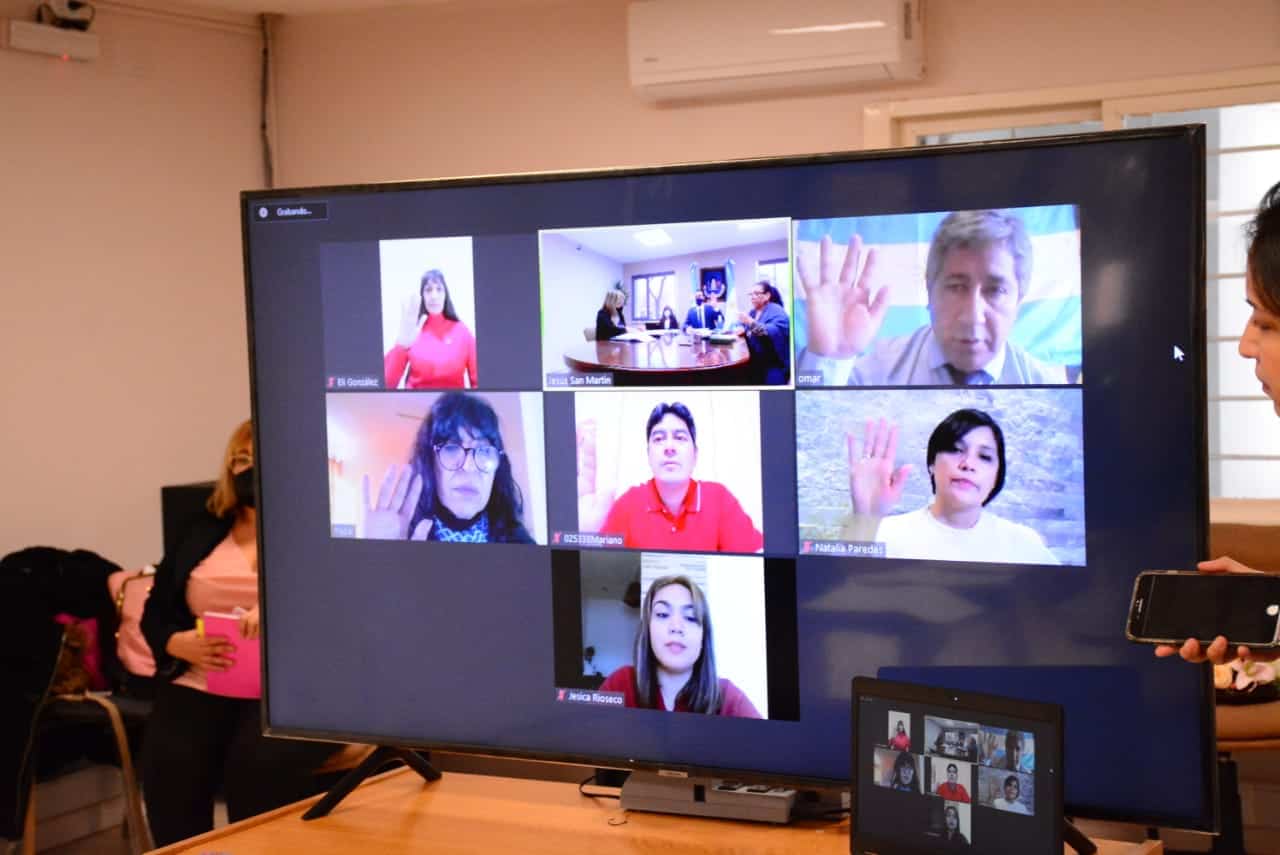 Junto al presidente del cuerpo, Jesús San Martín que estuvo en la sala de sesiones de manera presencial, estuvieron los ediles María Elena Paladino y Rubén Flores. El resto lo hicieron, desde sus viviendas.