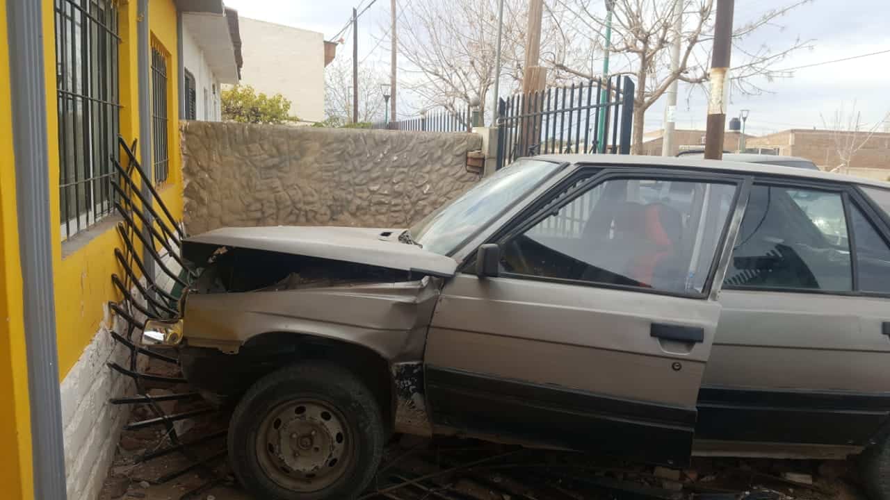 El conductor de un automóvil Renault 11 perdió el control del volante y terminó contra el paredón de una casa situada en el barrio Universitario de Plaza Huincul.