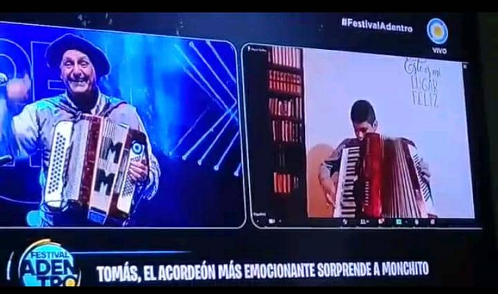En el mediodía de este domingo se lo pudo ver en el ciclo “Festival Adentro” que se emite por la pantalla de la TV Pública, donde los conductores se vieron sumamente deleitados por la historia y la destreza en la ejecución del instrumento por parte de Tomás.