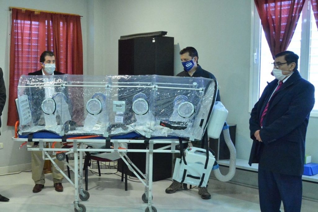 Esta mañana se hizo entrega del nuevo equipamiento para el hospital de Complejidad VI. Es una camilla de aislamiento IsoArk N 36-6 diseñada para transportar pacientes de COVID 19.
