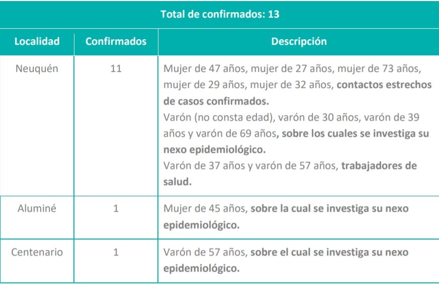 Esta noche, se notificaron trece (13) nuevos casos confirmados de Coronavirus (COVID-19) de la provincia del Neuquén