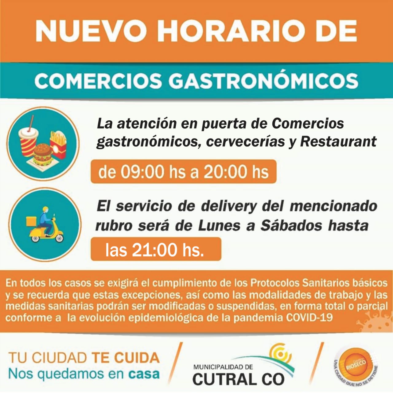 El decreto municipal firmado en Cutral Co, fija los nuevos horarios que están en vigencia desde el mismo momento en el que se anunció, para los comercios dedicados al rubro gastronómico.