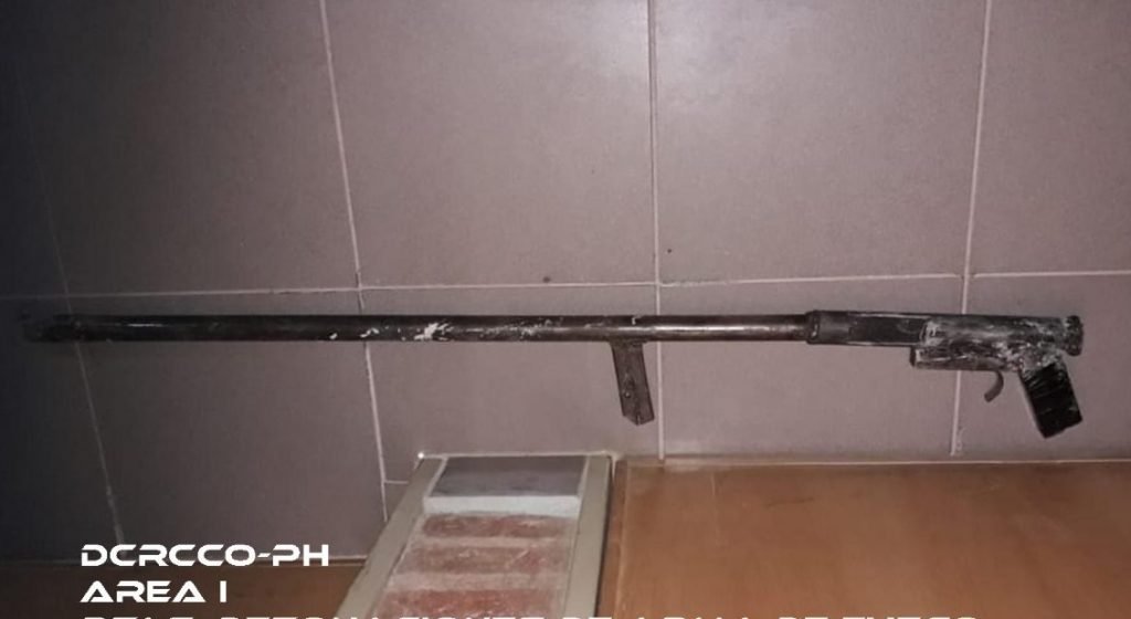 Recorrieron el sector y “no muy lejos del lugar observan al hombre que iba con un elemento de grandes dimensiones de fabricación casera”. El elemento se incautó y se comprobó que era un arma de fabricación “casera” de 1 metro y medio de largo. “Está adecuada para disparar a larga distancia”, especificó el comisario mayor Ariel Pereira.