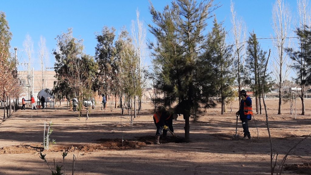 En Plaza Huincul, ya se iniciaron los trabajos de desmontado de árboles secos y añejos y se los repone con nuevas especies.