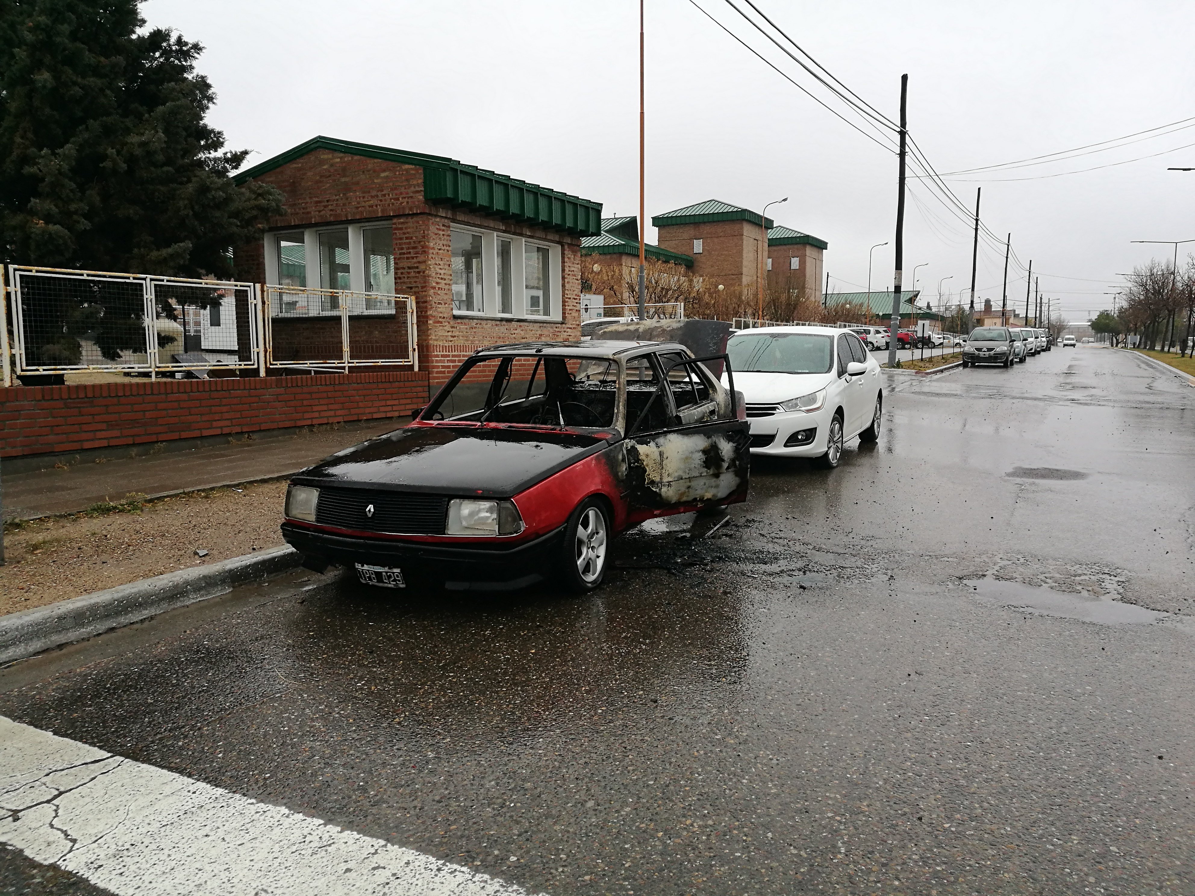 El Renault tenía una puerta abierta y el fuego salía desde la cabina, causando daños totales en el interior, y otros menores en el motor y baúl.