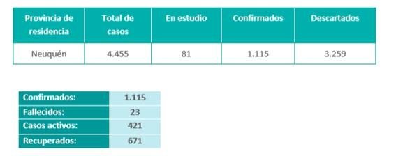 Resumen de la situación epidemiológica en la provincia del Neuquén a la fecha: