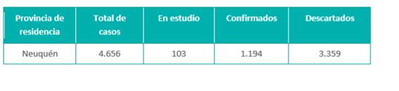 Resumen de la situación epidemiológica en la provincia del Neuquén a la fecha: