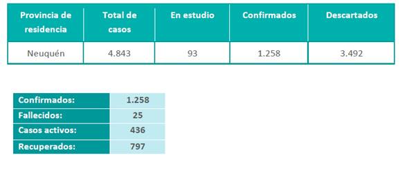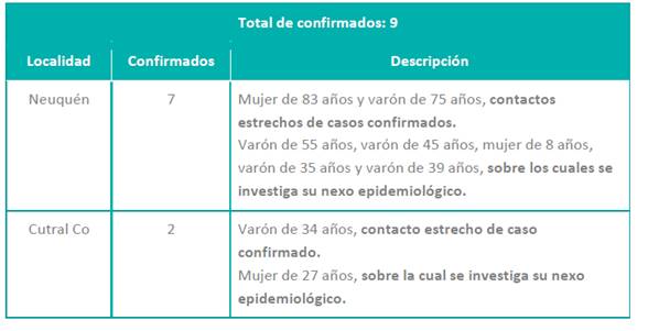Resumen de la situación epidemiológica en la provincia del Neuquén a la fecha: