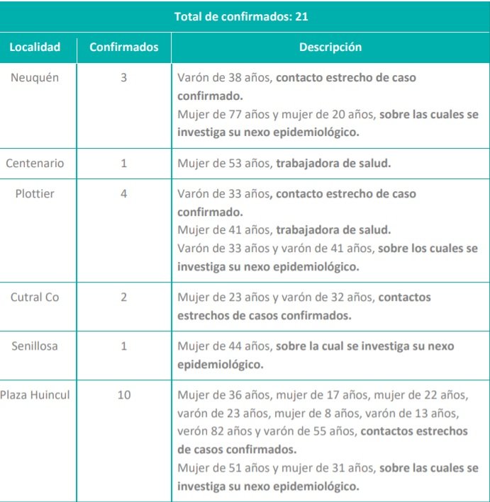 El primer parte del miércoles da cuenta de doce casos de coronavirus en Cutral Co y Plaza Huincul.