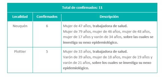 El primer parte de este viernes confirmó once 11 nuevos casos de coronavirus (Covid-19) de la provincia del Neuquén.