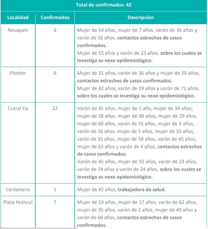 Por otra parte, informamos el fallecimiento de una persona de la provincia del Neuquén por