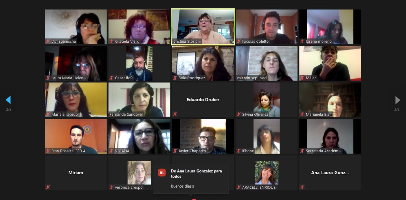 En el marco de una agenda que aborda los lineamientos trazados para el plan Camino a la Escuela Presencial y temas planteados por las instituciones, la titular de la cartera se reunió en formato virtual con referentes de todos los ISFD, Escuelas de Música, Escuela de Bellas Artes, CEF y Equipos Interdisciplinarios.