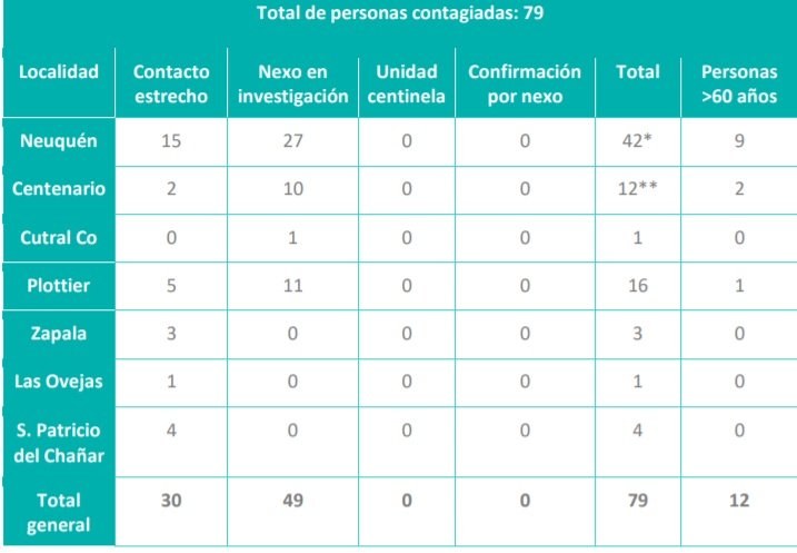 Cabe aclarar que las dos personas contagiadas activas de la localidad de San Martín de los Andes se encuentran actualmente en la ciudad de Neuquén.