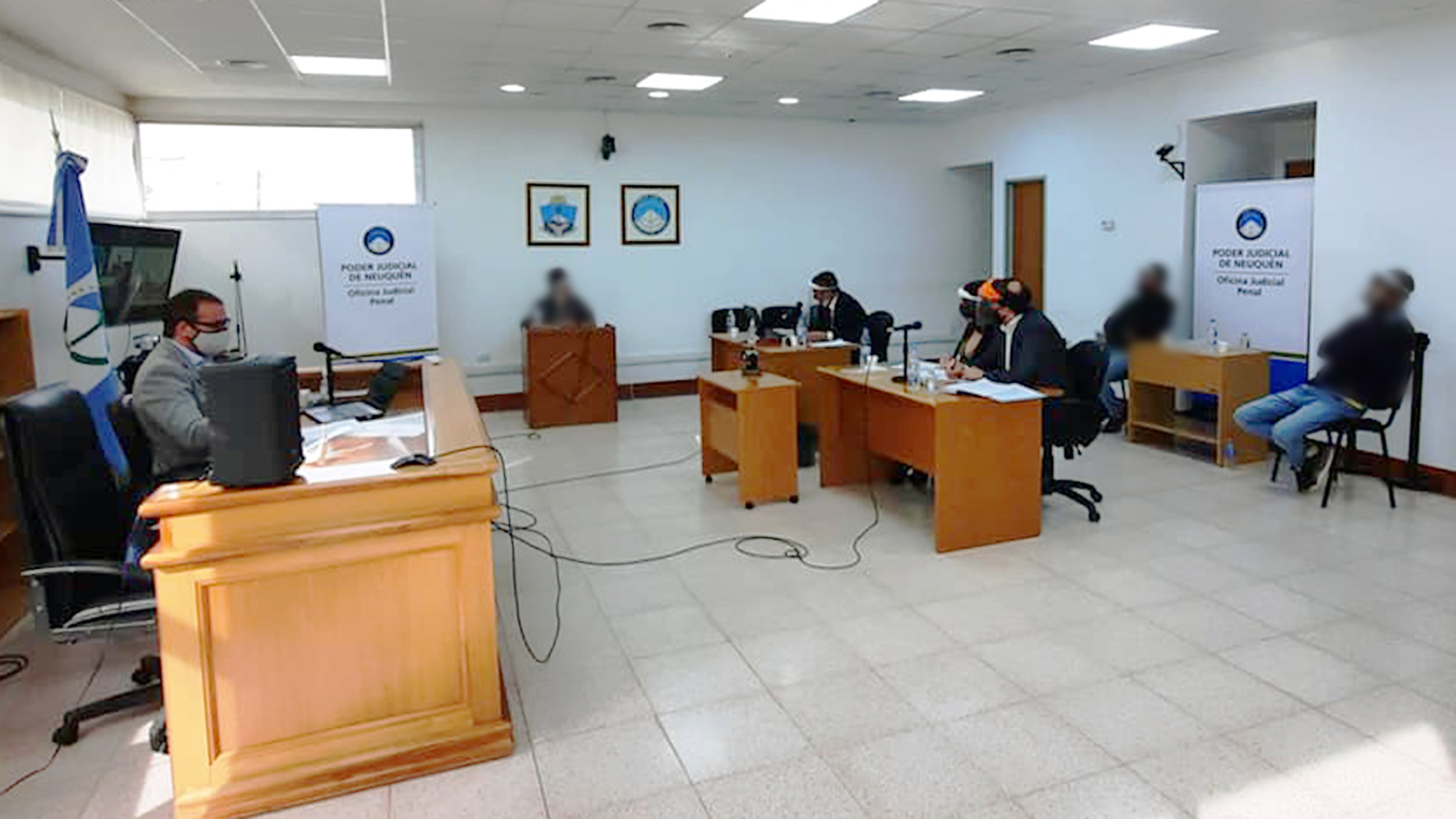 El juicio fue el primero en realizarse en la Segunda Circunscripción Judicial bajo el protocolo sanitario elaborado por el Poder Judicial tras la pandemia de COVID-19, y comenzó el pasado miércoles con la presencia del fiscal Gastón Liotard en la misma sala que los imputados y su representante legal, el defensor público Diego Simonelli; Mientras que los jueces Raúl Aufranc, Laura Barbé y Mario Tomassi presenciaron el proceso por videoconferencia.