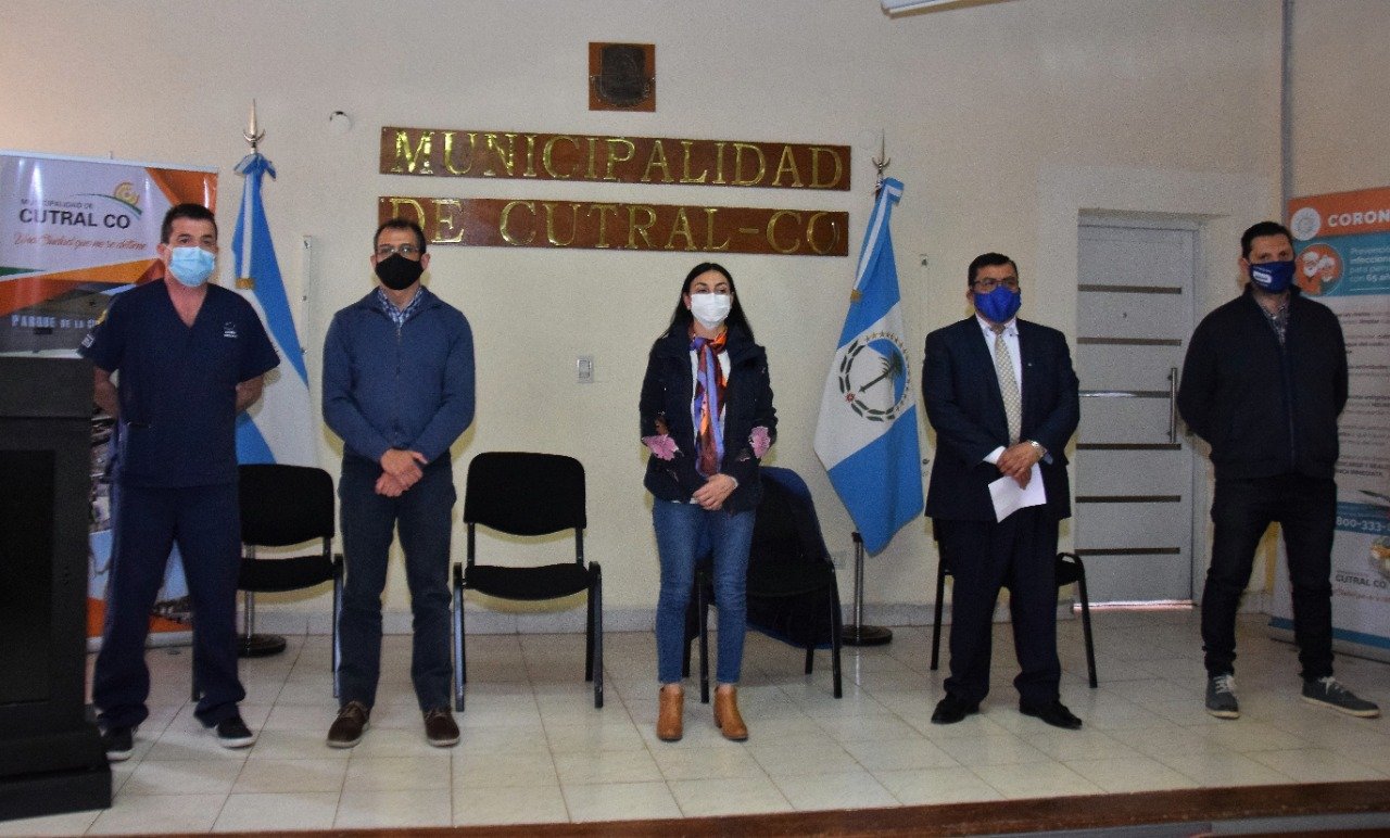 Hoy, en el salón de Acuerdos “Américo Verdenelli” de Cutral Co, el intendente José Rioseco recibió a la ministra de Salud, Andrea Peve y a su vecino de Plaza Huincul, Gustavo Suárez.