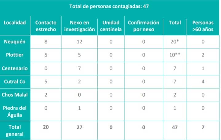 En tanto, el parte informa que hay 47 casos confirmados en diferentes localidades de la provincia.