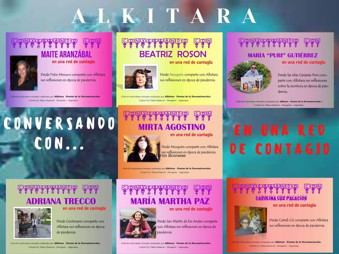En el ciclo “Conversando con … en una red de contagio”, fueron invitadas: Adriana Trecco (Centenario), Mirta Agostino (Neuquén), María M. Paz (San Martín de los Andes), Carolina Palacios (Cutral Co), Beatriz Rosón (Neuquén), Maite Aranzábal (Fiske Menuco) y la poeta invitada de Islas Canarias María “Puri” Gutiérrez.