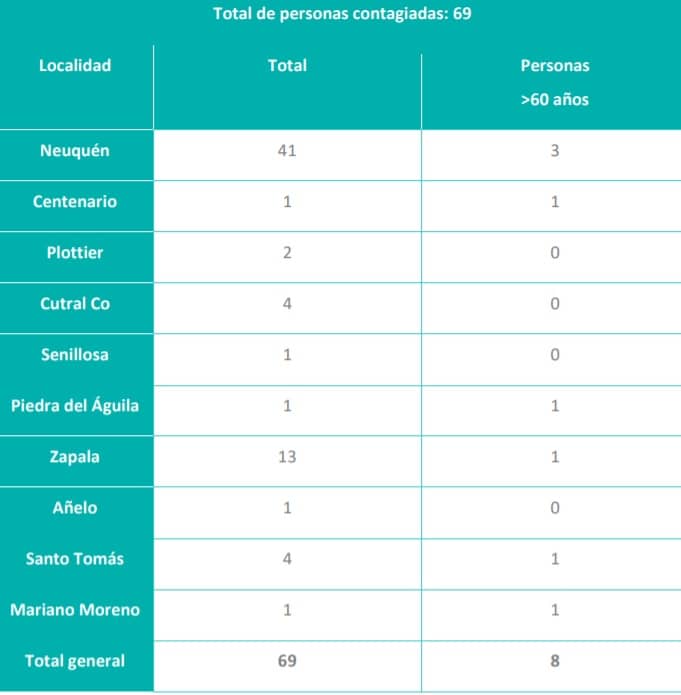 En la provincia, se notificaron sesenta y nueve (69) nuevas personas contagiadas de Coronavirus (COVID-19) de la provincia del Neuquén, esta noche y en total, suman 120.